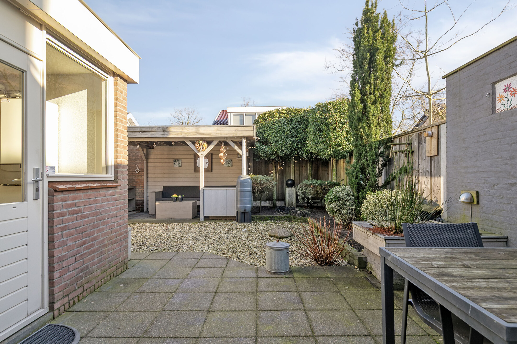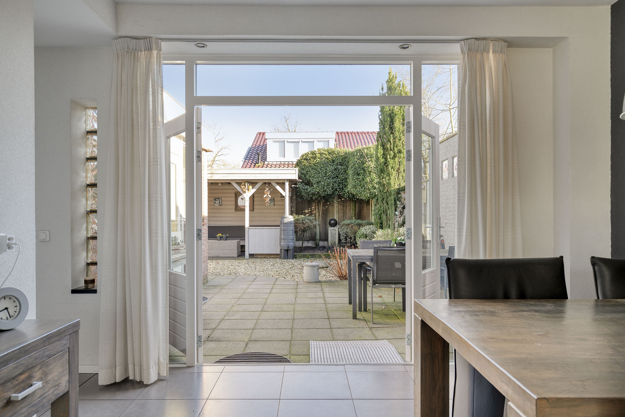 Toplocatie! Zeer goed onderhouden en UITGEBOUWD HELFT VAN DUBBEL WOONHUIS met BIJKEUKEN, GARAGE, CARPORT en VERANDA op een fraai perceel van 244 m². De woning bevindt zich in een rustige en zeer gewilde woonomgeving, op loopafstand van het centrum, het streek- ziekenhuis en een plantsoen. Daarnaast zijn het NS-station, busstation en uitvalswegen snel en eenvoudig bereikbaar. Indeling Via de entree bereikt u aan de voorzijde de sfeervolle woonkamer met grote raampartijen en vrij zicht over de straat. Dankzij de openslaande deuren is er een prettige verbinding met de achtertuin en volop lichtinval. In de UITBOUW bevindt zich de keuken, uitgerust met diverse inbouwapparatuur, waaronder een keramische kookplaat, afzuigkap, koelkast, combimagnetron en vaatwasser. Aansluitend vindt u de ruime en praktische BIJKEUKEN met tuindeur – ideaal voor extra bergruimte en dagelijks gebruik. Hier de aansluiting voor de wasmachine en de opstelplaats voor de combi c.v. ketel. De gehele begane grond is voorzien van een plavuizenvloer met comfortabele vloerverwarming. De wanden zijn afgewerkt met spachtelputz in lichte kleurstelling. Op de eerste verdieping bevindt zich de overloop met raampartij en toegang naar de ruime slaapkamer met DAKKAPEL en airconditioning. De volledig betegelde badkamer, met vloerverwarming, is compleet uitgevoerd met een ligbad, ruime inloopdouche, wastafel en een tweede toilet. Tuin en buitenruimte De fraai aangelegde achtertuin is gesitueerd op het zuidoosten en voorzien van sierbestrating, vaste beplanting en een gezellige VERANDA waar u heerlijk kunt ontspannen. De stenen GARAGE, met elektra, wordt voorafgegaan door een CARPORT. Op eigen terrein is er ruim voldoende parkeergelegenheid voor meerdere auto’s of bijvoorbeeld een caravan. Algemeen De woning is uitgevoerd in lichte, neutrale kleuren en altijd met zorg onderhouden. Het buitenschilderwerk is vorig jaar nog bijgewerkt. Kenmerken - Bouwjaar 1961 - Energielabel D. - Combi c.v. ketel uit 2007
