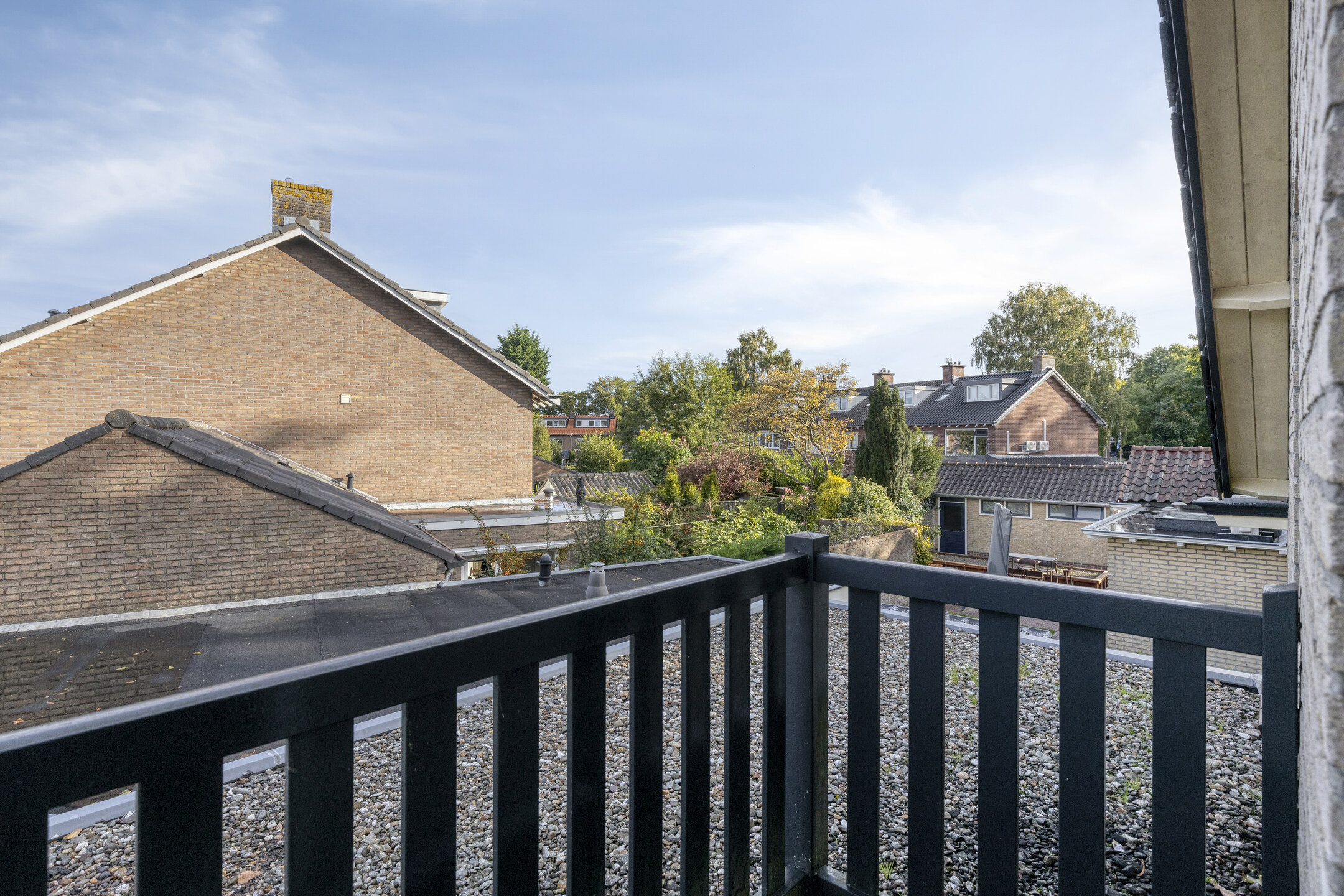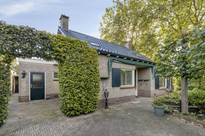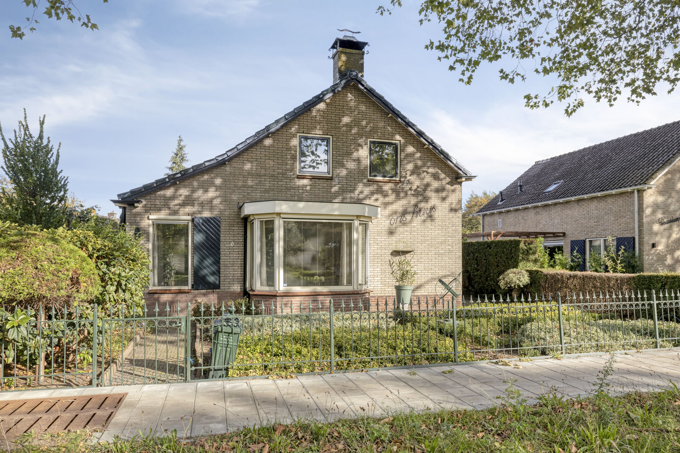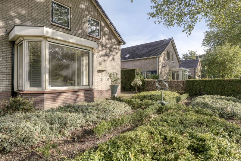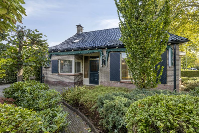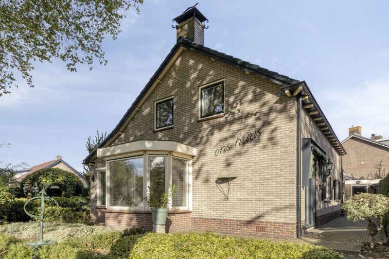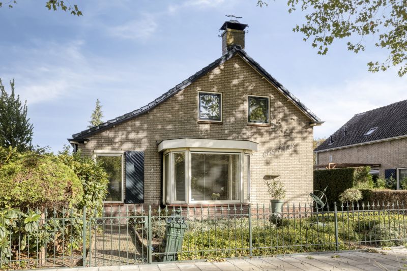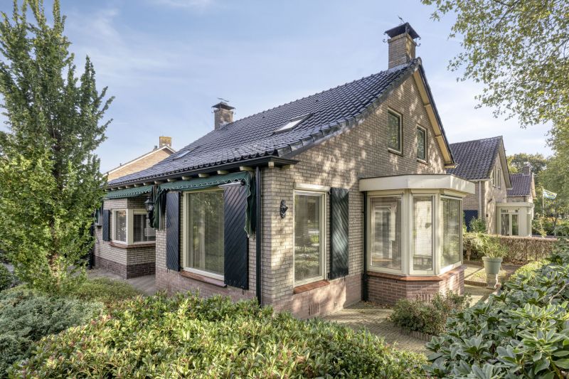 Vrijstaande woning met ROYALE GARAGE met BERGING op een mooi perceel van 527 m². Op een fraai hoek gelegen ligt deze woning met een vrij uitzicht over groen op een toplocatie. Royale entree met toegang naar de woonkamer met ERKER, openslaande deuren, fraaie parketvloer en een vrij uitzicht over groen. Er is een gesloten eenvoudige keuken met inbouwapparatuur en aansluitend een ruime BIJKEUKEN met pantry en veel kastruimte. Verder een grote badkamer voorzien van een douche met cabine, een ligbad en 2 wastafels. Op de eerste verdieping de overloop met 2 vaste kasten. Hier bevinden zich twee ruime slaapkamers, beide voorzien van veel berg-/kastruimte. Waarvan één met toegang tot een BALKON. Separaat een tweede toilet met een wastafelmeubel. Er is een kleine vliering. In de achtertuin een royale stenen GARAGE met voldoende parkeergelegenheid op eigen terrein achter een fraai sierhekwerk voor auto’s of een caravan. Voorzien van automatische deuropener, elektra, verwarming en aansluiting wasmachine. Achter de garage bevindt zich een ruime stenen BERGING. Rondom de woning is er een verzorgde tuin met meerdere terrassen en vaste beplanting. De zeer centrale ligging maakt het compleet, in de nabijheid van een groot winkelcentrum, scholen, uitgestrekte bossen en de A28 gelegen. Bouwjaar 1960. Perceel 527 m². Verwarming en warmwater middels een combi c.v. ketel uit 2014. Volledig geïsoleerd. Energielabel C. Indeling Begane grond Entree, toilet, woonkamer, gesloten keuken, badkamer en bijkeuken. Eerste verdieping Overloop, twee slaapkamers en tweede toilet.