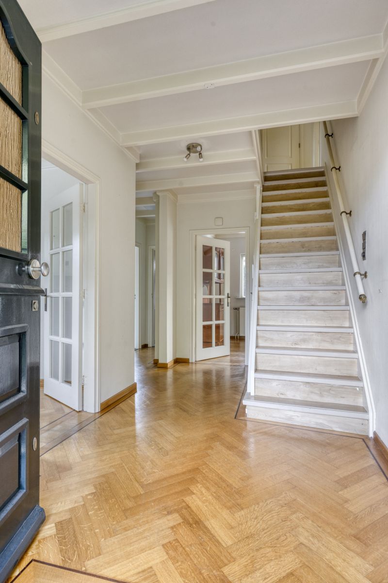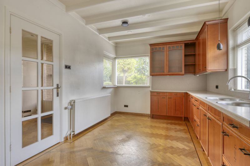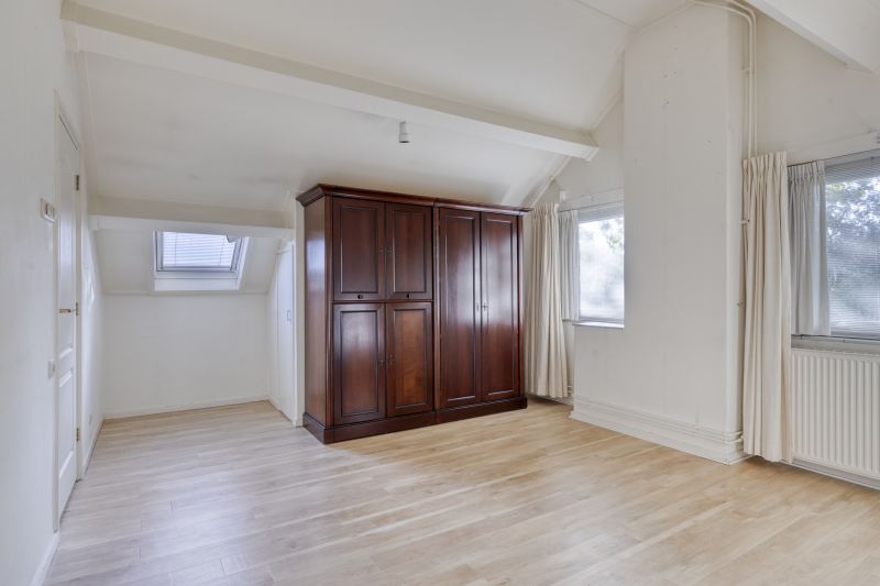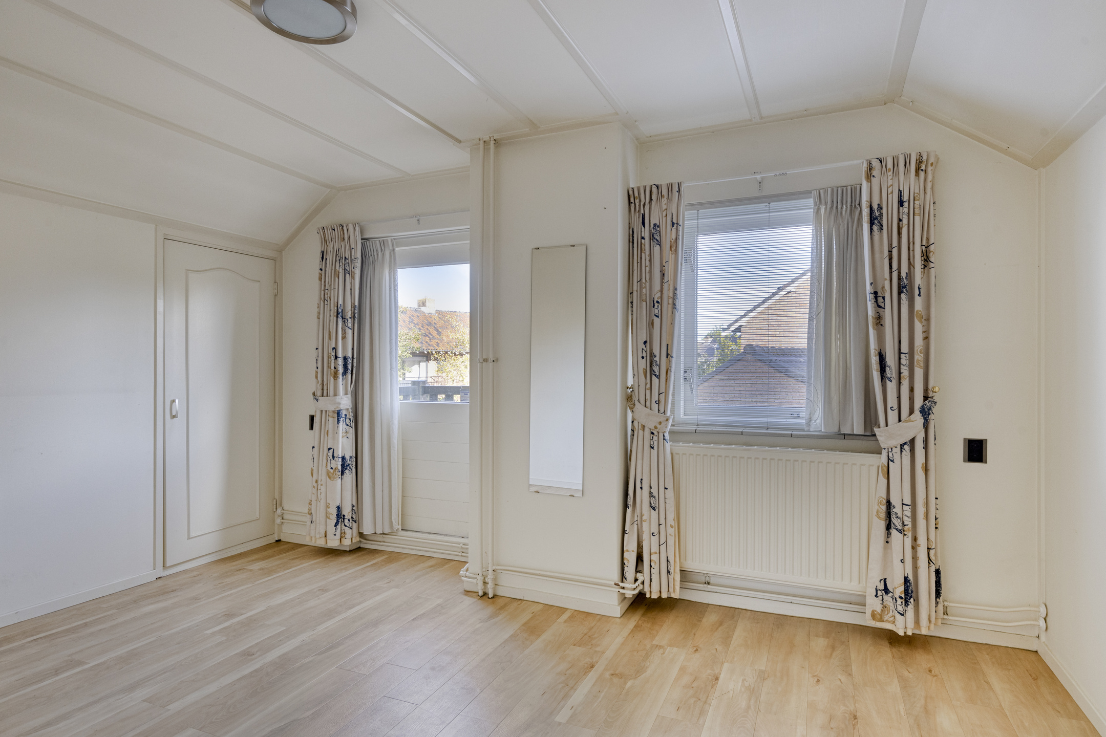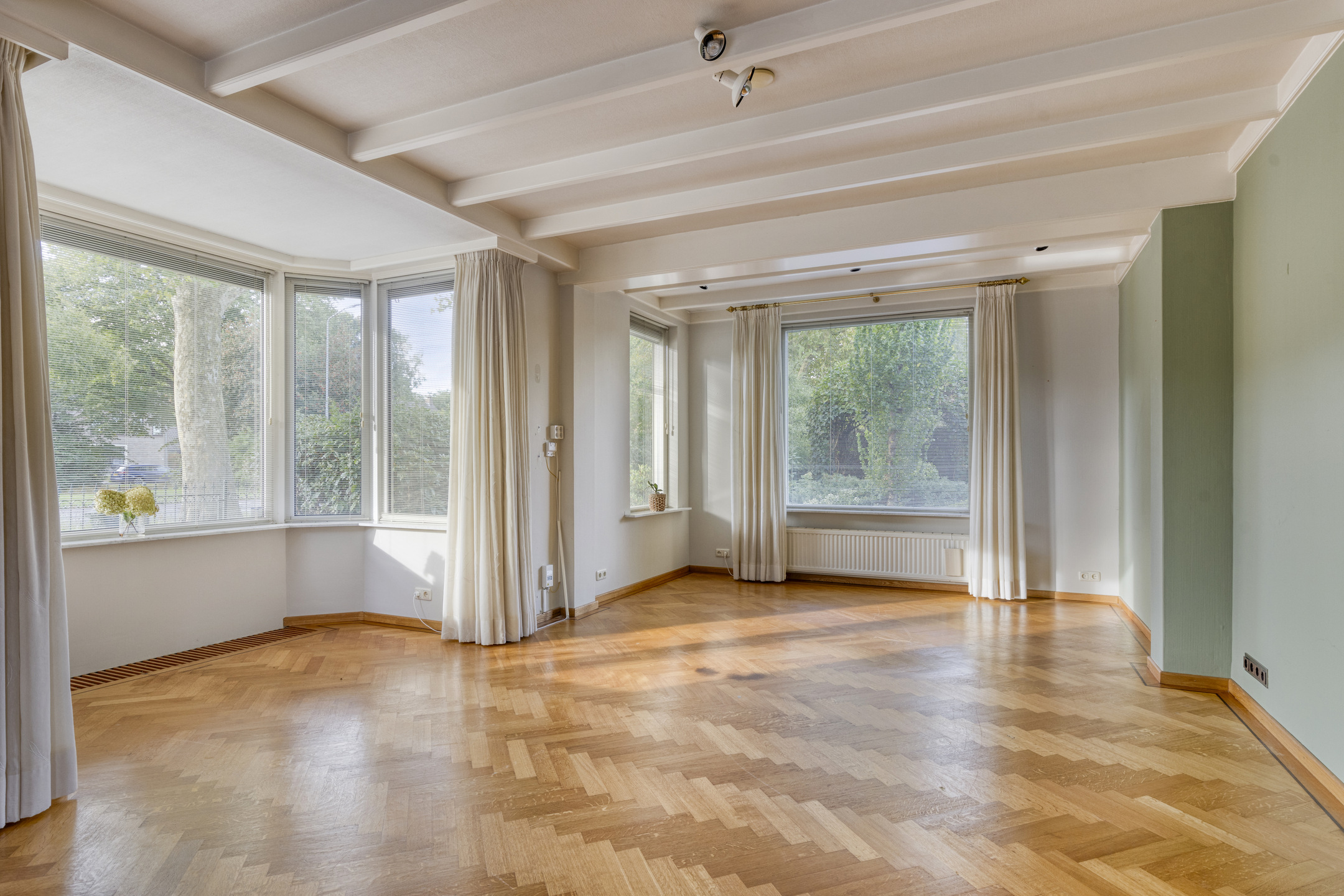 Vrijstaande woning met ROYALE GARAGE met BERGING op een mooi perceel van 527 m². Op een fraai hoek gelegen ligt deze woning met een vrij uitzicht over groen op een toplocatie. Royale entree met toegang naar de woonkamer met ERKER, openslaande deuren, fraaie parketvloer en een vrij uitzicht over groen. Er is een gesloten eenvoudige keuken met inbouwapparatuur en aansluitend een ruime BIJKEUKEN met pantry en veel kastruimte. Verder een grote badkamer voorzien van een douche met cabine, een ligbad en 2 wastafels. Op de eerste verdieping de overloop met 2 vaste kasten. Hier bevinden zich twee ruime slaapkamers, beide voorzien van veel berg-/kastruimte. Waarvan één met toegang tot een BALKON. Separaat een tweede toilet met een wastafelmeubel. Er is een kleine vliering. In de achtertuin een royale stenen GARAGE met voldoende parkeergelegenheid op eigen terrein achter een fraai sierhekwerk voor auto’s of een caravan. Voorzien van automatische deuropener, elektra, verwarming en aansluiting wasmachine. Achter de garage bevindt zich een ruime stenen BERGING. Rondom de woning is er een verzorgde tuin met meerdere terrassen en vaste beplanting. De zeer centrale ligging maakt het compleet, in de nabijheid van een groot winkelcentrum, scholen, uitgestrekte bossen en de A28 gelegen. Bouwjaar 1960. Perceel 527 m². Verwarming en warmwater middels een combi c.v. ketel uit 2014. Volledig geïsoleerd. Energielabel C. Indeling Begane grond Entree, toilet, woonkamer, gesloten keuken, badkamer en bijkeuken. Eerste verdieping Overloop, twee slaapkamers en tweede toilet.