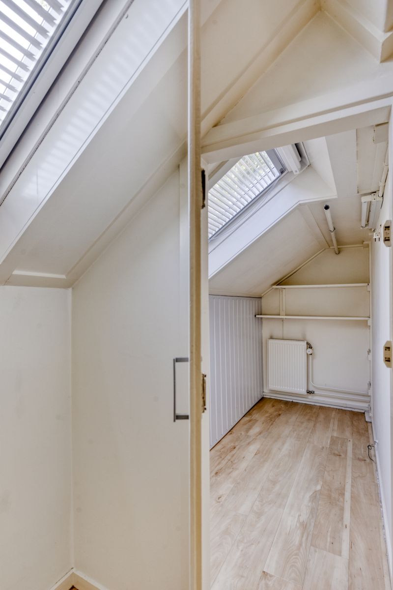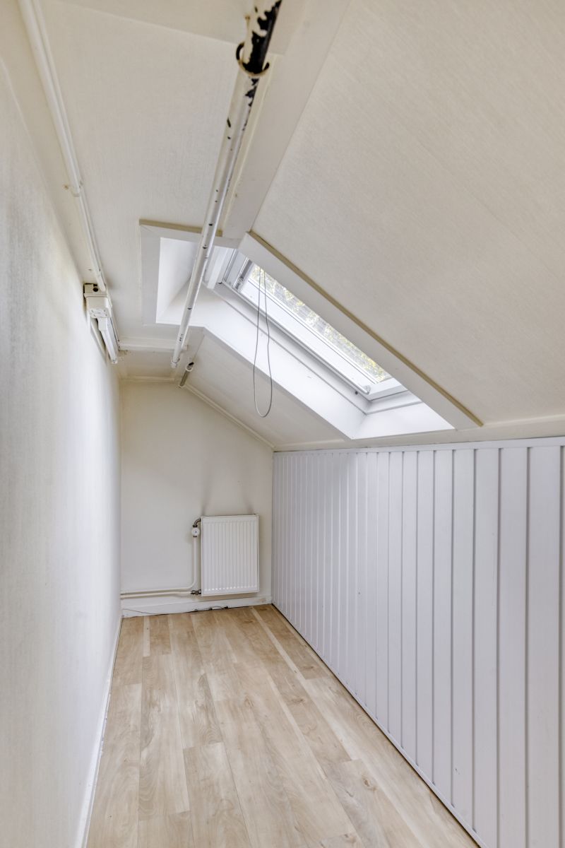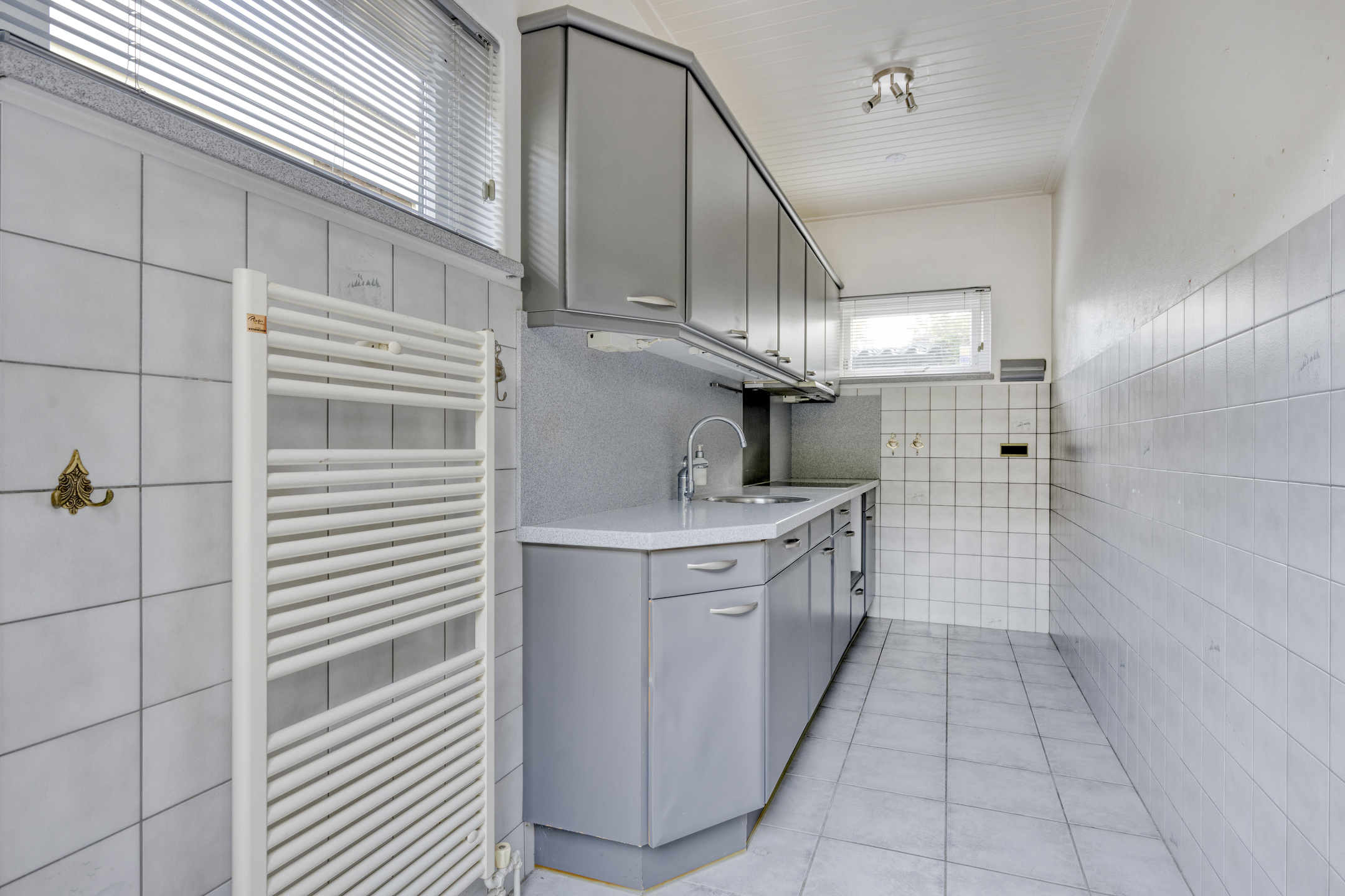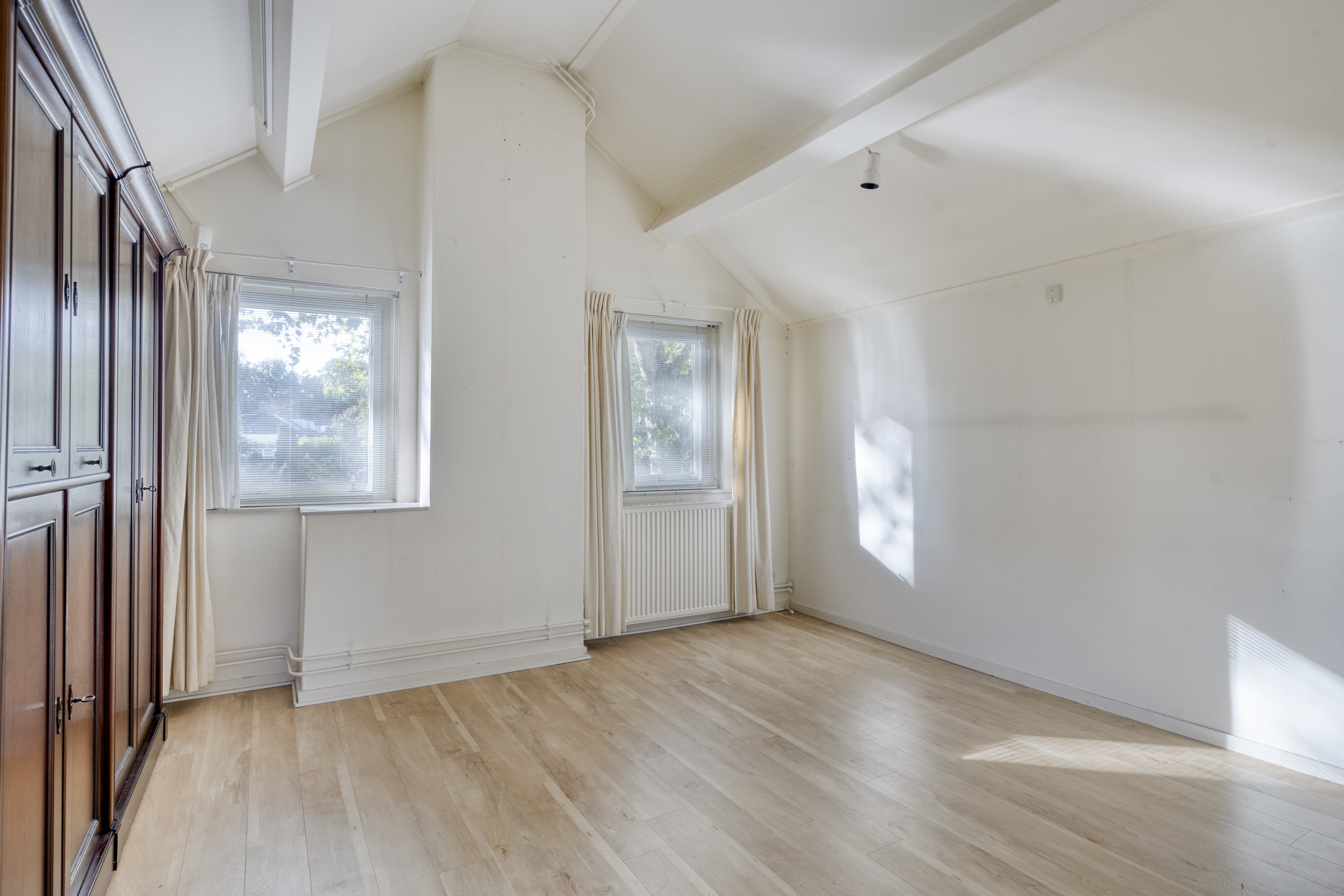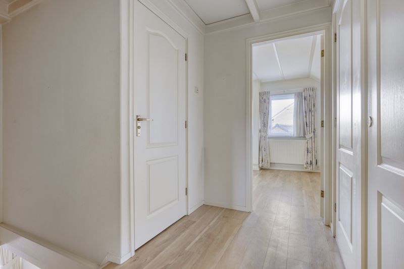 Vrijstaande woning met ROYALE GARAGE met BERGING op een mooi perceel van 527 m². Op een fraai hoek gelegen ligt deze woning met een vrij uitzicht over groen op een toplocatie. Royale entree met toegang naar de woonkamer met ERKER, openslaande deuren, fraaie parketvloer en een vrij uitzicht over groen. Er is een gesloten eenvoudige keuken met inbouwapparatuur en aansluitend een ruime BIJKEUKEN met pantry en veel kastruimte. Verder een grote badkamer voorzien van een douche met cabine, een ligbad en 2 wastafels. Op de eerste verdieping de overloop met 2 vaste kasten. Hier bevinden zich twee ruime slaapkamers, beide voorzien van veel berg-/kastruimte. Waarvan één met toegang tot een BALKON. Separaat een tweede toilet met een wastafelmeubel. Er is een kleine vliering. In de achtertuin een royale stenen GARAGE met voldoende parkeergelegenheid op eigen terrein achter een fraai sierhekwerk voor auto’s of een caravan. Voorzien van automatische deuropener, elektra, verwarming en aansluiting wasmachine. Achter de garage bevindt zich een ruime stenen BERGING. Rondom de woning is er een verzorgde tuin met meerdere terrassen en vaste beplanting. De zeer centrale ligging maakt het compleet, in de nabijheid van een groot winkelcentrum, scholen, uitgestrekte bossen en de A28 gelegen. Bouwjaar 1960. Perceel 527 m². Verwarming en warmwater middels een combi c.v. ketel uit 2014. Volledig geïsoleerd. Energielabel C. Indeling Begane grond Entree, toilet, woonkamer, gesloten keuken, badkamer en bijkeuken. Eerste verdieping Overloop, twee slaapkamers en tweede toilet.