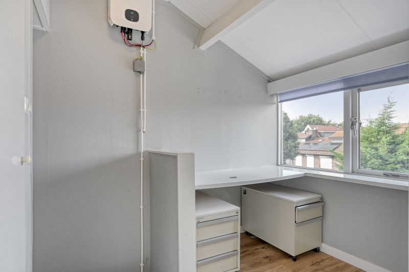 UITGEBOUWDE MIDDENWONING met 4 slaapkamers, OVERKAPPING en zonnige TUIN. Deze moderne en instapklare MIDDENWONING is in 2020 grondig verbouwd en van alle gemakken voorzien. Tijdens de renovatie zijn onder andere de woonkamer en keuken voorzien van een nieuwe schuimbetonvloer met comfortabele vloerverwarming met pvc vloer en alle wanden en plafond glad gestuukt. Daarnaast is er een moderne, volledig uitgeruste keuken geplaatst, is de combi c.v. ketel vervangen, de meterkast volledig vernieuwd en zijn er 10 ZONNEPANALEN geïnstalleerd. Indeling Begane grond Via de entree toegang naar de L-vormige woonkamer met grote raampartijen wat zorgt voor een fijne lichtinval en openslaande tuindeuren. In de UITBOUW bevindt zich de modern uitgevoerde keuken (2020) voorzien van uitgebreide inbouwapparatuur. Aangrenzend is een achter portaal met een modern toilet, een praktische berging met aansluitingen voor wasmachine en c.v. ketel en een tuindeur. Eerste verdieping De overloop biedt toegang tot drie slaapkamers en een fraai afgewerkte badkamer met douche, tweede toilet en wastafelmeubel. Tweede verdieping Dankzij de ruime DAKOPBOUW is hier een royale vierde slaapkamer gerealiseerd, inclusief bergruimte. Buitenruimte De achtertuin is onderhoudsarm aangelegd en ligt ideaal op het westen, waardoor je volop van de middag- en avondzon kunt genieten. De tuin beschikt over een mooie OVERKAPPING met LICHTSTRAAT en geïntegreerde verlichting, een stenen BERGING en een handige achterom. Locatie Ideaal gelegen op loopafstand van de gezellige boulevard, de havens, de historische binnenstad van Harderwijk, scholen, supermarkt en de uitvalswegen. Bijzonderheden - Bouwjaar 1955. - Perceeloppervlakte 123 m². - Woonoppervlakte 111 m². - Voorzien van dubbel glas, dak- en vloerisolatie. - Energielabel C. De beste indruk van deze woning krijgt u natuurlijk tijdens een bezichtiging. Dit is vrijblijvend en u kunt dan op uw gemak samen met de makelaar alles bekijken. Neemt u gerust contact met ons op voor een afspraak via de mail of door ons te bellen!