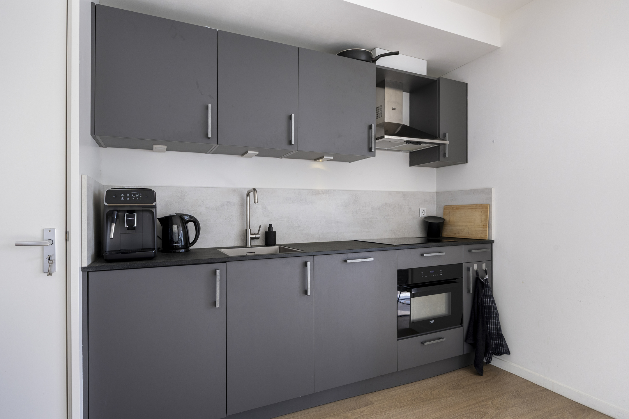 Starters opgelet! Instapklaar en modern DRIEKAMERAPPARTEMENT met ZONNIG TERRAS. Ben jij op zoek naar een perfect afgewerkt appartement waar je zó in kunt? Zoek niet verder! Dit moderne driekamerappartement is in 2021/2022 volledig gemoderniseerd - je hoeft alleen nog je spullen te verhuizen. Indeling & afwerking Via de centrale entree bereik je de eerste verdieping van dit kleinschalige complex. De woonkamer is smaakvol afgewerkt. De open keuken is modern en uitgerust met diverse inbouwapparatuur, waaronder een inductiekookplaat, afzuigkap, koelkast, vaatwasser en combi-magnetron. Toilet met fontein. Middels openslaande deuren stap je zo het ruime en zonnige terras op (gelegen op het zuid/oosten), een heerlijke plek om van het vrije uitzicht, de zon en het buitenleven te genieten. De TWEE slaapkamers bevinden zich aan de voorzijde van de woning en profiteren dankzij grote raampartijen van een prettige, natuurlijke lichtinval. De modern betegelde badkamer beschikt over een inloopdouche, stijlvol wastafelmeubel en de aansluiting voor de wasmachine. Het gehele appartement is strak afgewerkt met glad gestuukte wanden en plafonds, comfortabele vloerverwarming en een fraaie pvc-vloer. In de nabijheid is er voldoende gelegenheid voor het parkeren van je auto. Aan de achterzijde is er een gezamenlijke klein perceel met nr. 7B. Hier bevindt zich de overkapte FIETSENBERGING. Ligging Centraal gelegen, op korte afstand van het Wolderwijd, het sfeervolle historische centrum van Harderwijk met gezellige winkels en restaurants, en op loopafstand van het Strandeiland en de boulevard met jachthaven. Bijzonderheden - Woonoppervlakte ca. 56 m² - Bouwjaar 1974, maar volledig verbeterd/gemoderniseerd in 2021/2022 - Energielabel A - Eigen combi c.v. ketel (2020) - Eigen meterkast met tussenmeters voor gas, elektra en water - Kleinschalig complex met 3 leden - Lage servicekosten: € 63,-- per maand - Maandelijkse verrekening van gas, elektra en water via de tussenmeters Maak snel een afspraak voor een bezichtiging. Dit appartement is instapklaar, sfeervol, energiezuinig en heeft alles wat je nodig hebt!