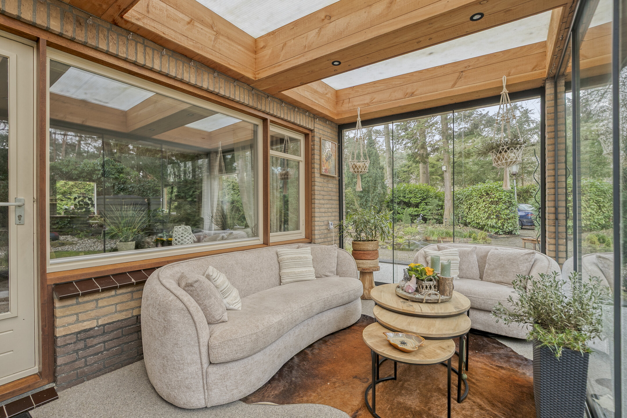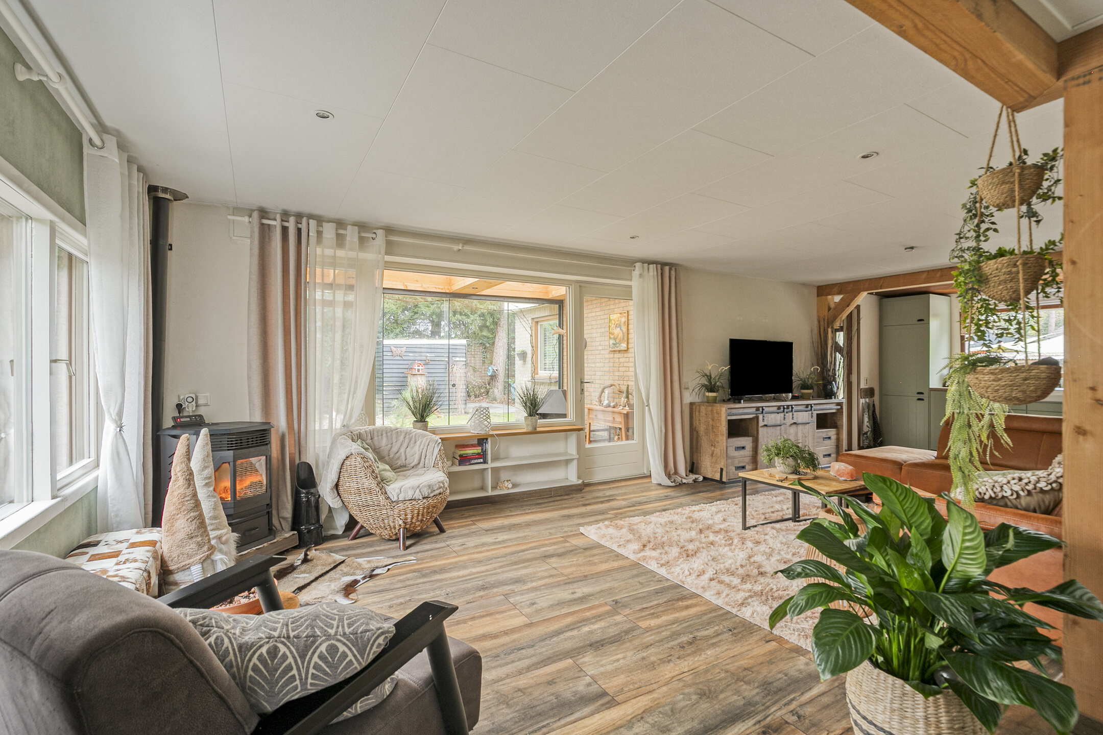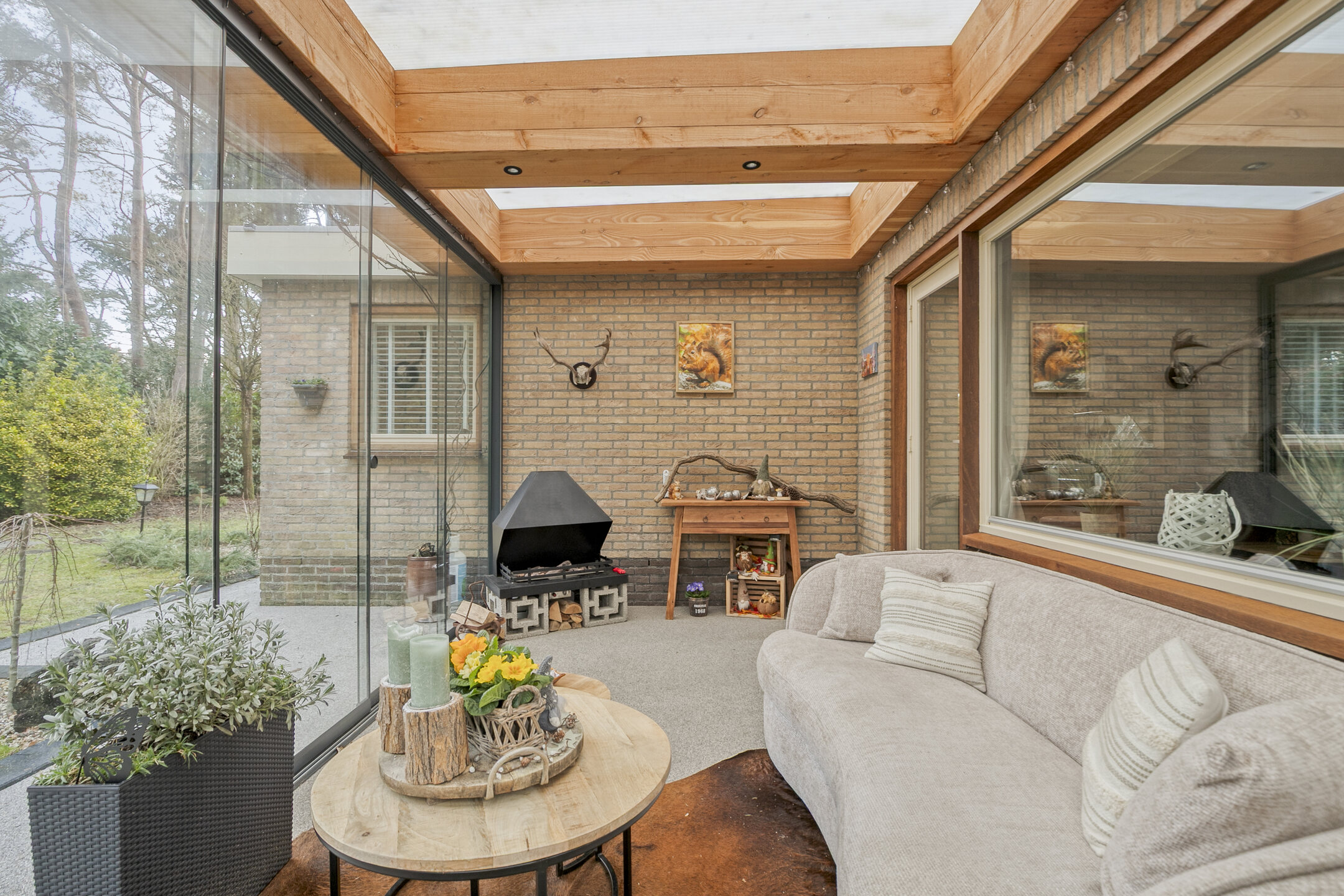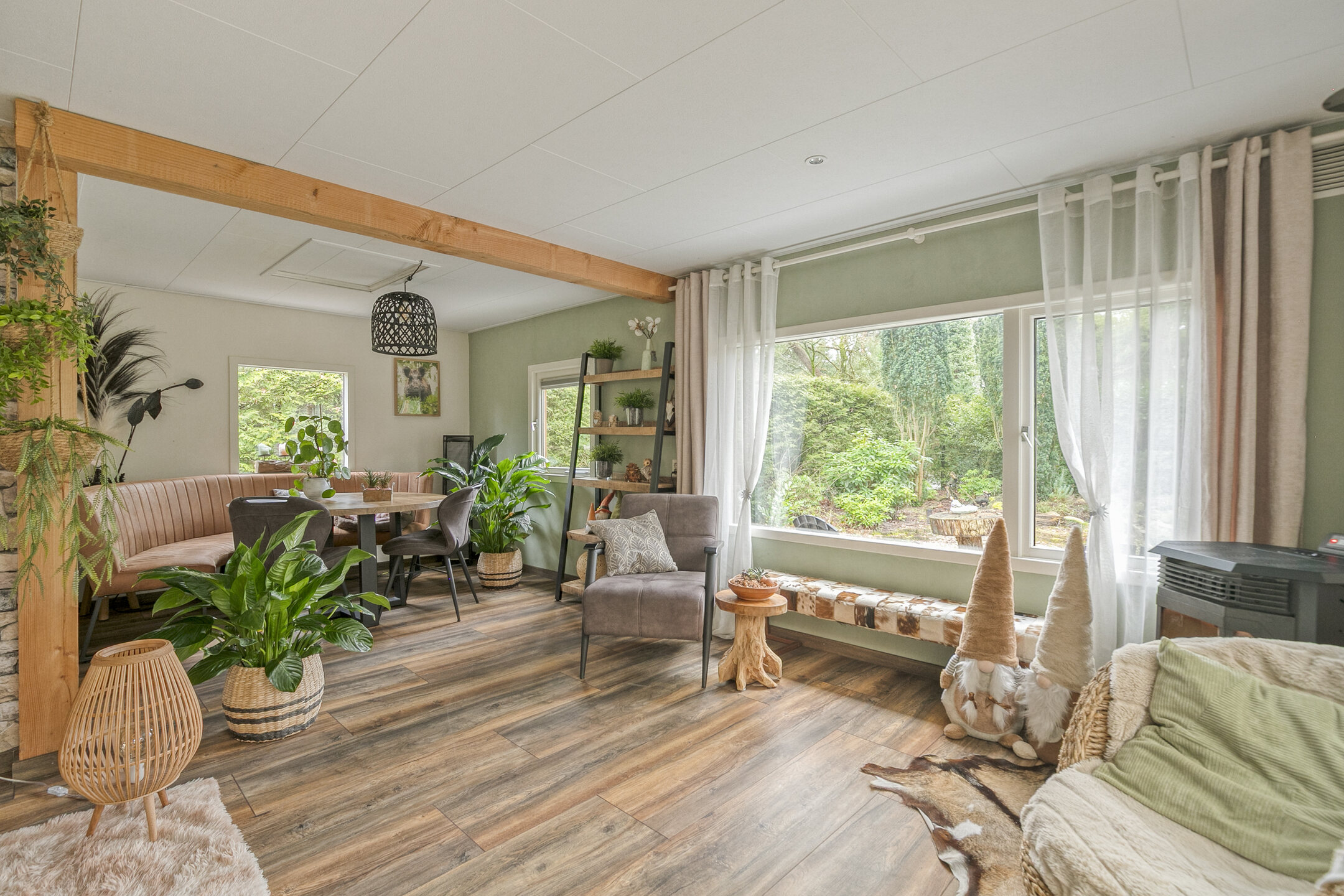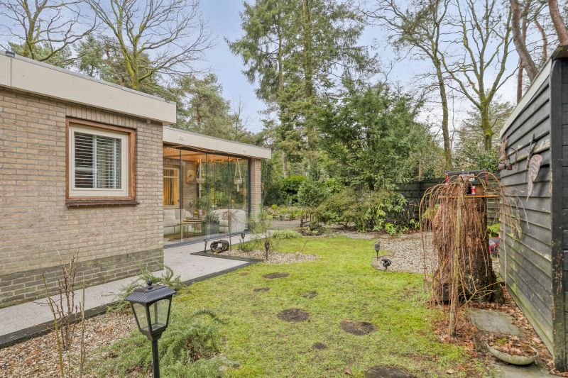 Vrijstaand wonen in het groen – rust, privacy en comfort op 823 m² eigen grond. De ideale combinatie van vrijstaand wonen in een bosrijke omgeving op een royaal perceel van maar liefst 823 m². Rust en privacy staan hier centraal. Deze moderne, levensloopbestendige woning biedt alle voorzieningen op de begane grond en is vanaf 2023 volledig verbouwd, gemoderniseerd én verduurzaamd. Compleet vernieuwd vanaf 2023 Bij de verbouwing is nagenoeg de gehele indeling aangepast. Hierdoor is een ruime en sfeervolle woonkamer ontstaan met grote raampartijen, een prachtige lichtinval en vrij uitzicht over de tuin. De moderne open keuken is geplaatst met complete inbouwapparatuur en er is een volledig nieuwe badkamer gerealiseerd. Recent is bovendien de overkapping voorzien van een glazen schuifwand, zodat u optimaal en beschut kunt genieten van het buitenleven. Duurzaam en gas loos wonen. De woning is volledig geïsoleerd en gas loos uitgevoerd. Verwarming vindt plaats via een palletkachel en daarnaast zijn er 10 zonnepanelen aanwezig. Het warme water wordt geleverd via een elektrische boiler. Een comfortabele en energiezuinige woonoplossing. Buitenruimte met extra’s Gelegen op een hoekperceel op het park “Onze Woudstee”, op zeer korte afstand van prachtige zandverstuivingen en uitgestrekte bossen. Een ideale omgeving voor wandel- en fietsliefhebbers. Op slechts 10 minuten rijden ligt Harderwijk met haar gezellige boulevard, haven, uitgebreide winkelaanbod, uitstekende restaurants en historische binnenstad. De royale tuin beschikt over een groot gazon en meerdere terrassen met een ideale zonligging op het zuiden. Extra bijzonder zijn de zwemvijver en de tweede parkeergelegenheid op eigen terrein. Daarnaast is er een kleine inpandige berging aanwezig. Indeling Ruime entree met vaste kast en toegang tot de vergrote woonkamer. De woonkamer kenmerkt zich door de grote raampartijen en het vrije zicht op de tuin. Aansluitend bevindt zich de moderne open keuken met inductiekookplaat, afzuigkap, koelkast, vrieskast, vaatwasser en combimagnetron. De woning beschikt over twee volledig afgewerkte slaapkamers en een moderne badkamer met douche, wastafelmeubel en toilet. Tevens is er een praktische vliering aanwezig voor extra bergruimte. Kenmerken • Bouwjaar 1999 • Vanaf 2023 compleet verbeterd en gemoderniseerd • Perceeloppervlakte 823 m² • Volledig geïsoleerd • Gas loos • 10 zonnepanelen • Energielabel: A
